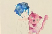 大きな猫とピッタリ離れないでいる少女。
