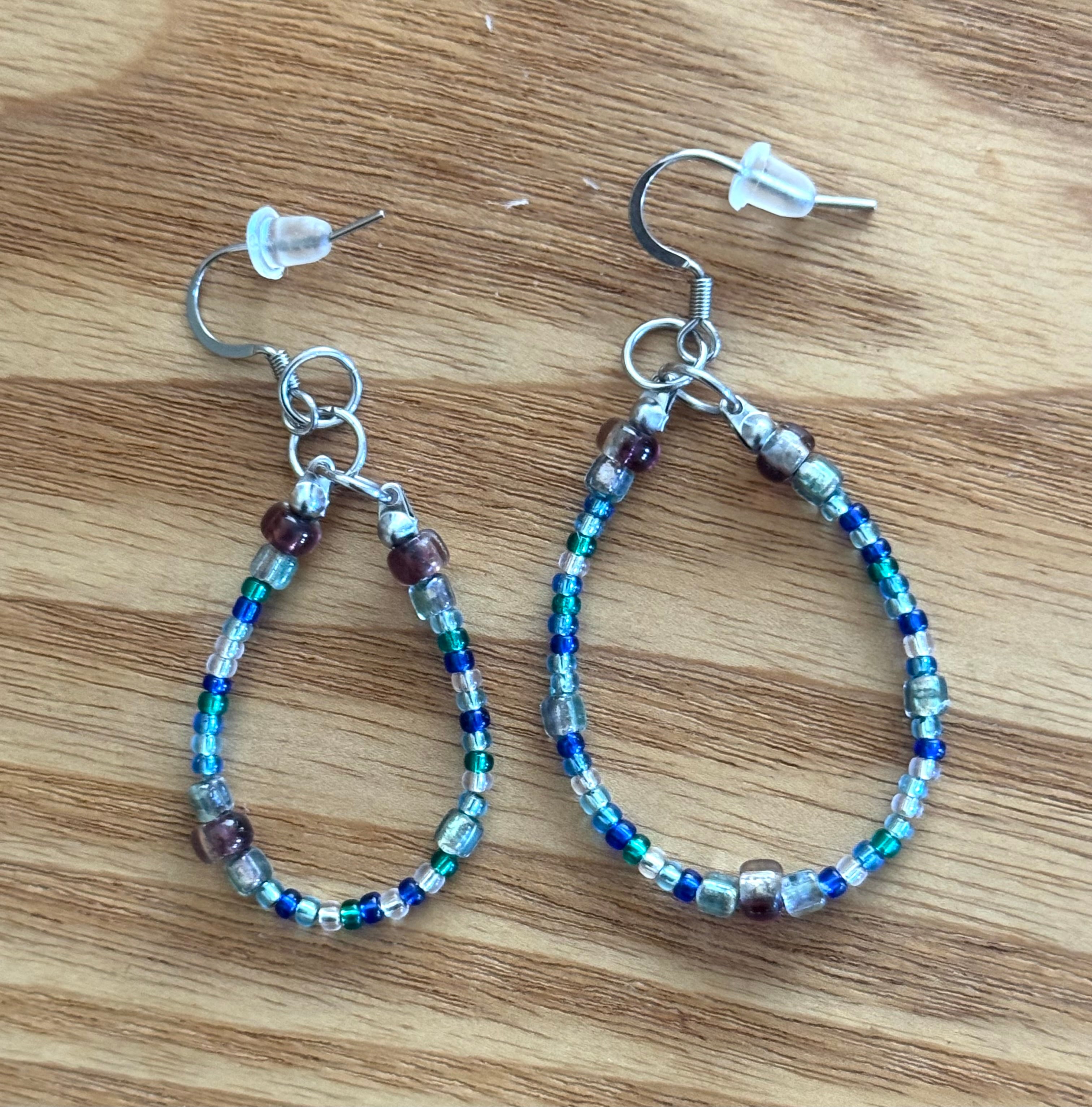 小さなビーズが連なるフープ、どのアクセサリーも軽いのが愛葉ブランド。