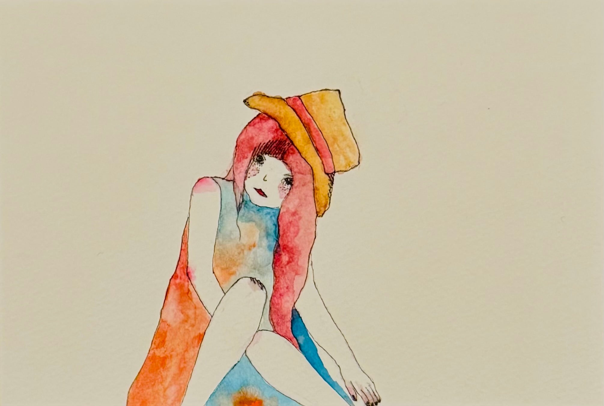 Ballpoint pen and watercolor painting on postcard paper