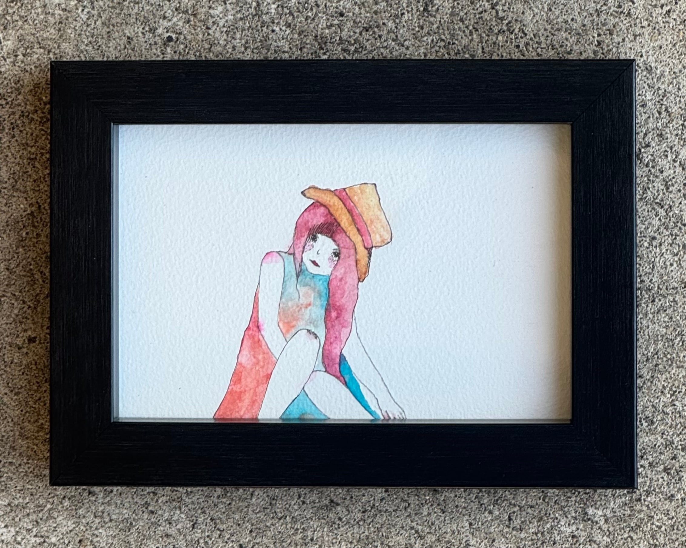 ボールペンと水彩で美しく描かれたハガキサイズの作品。複雑な色合いが今までの水彩とまた違う雰囲気を作り出しています。