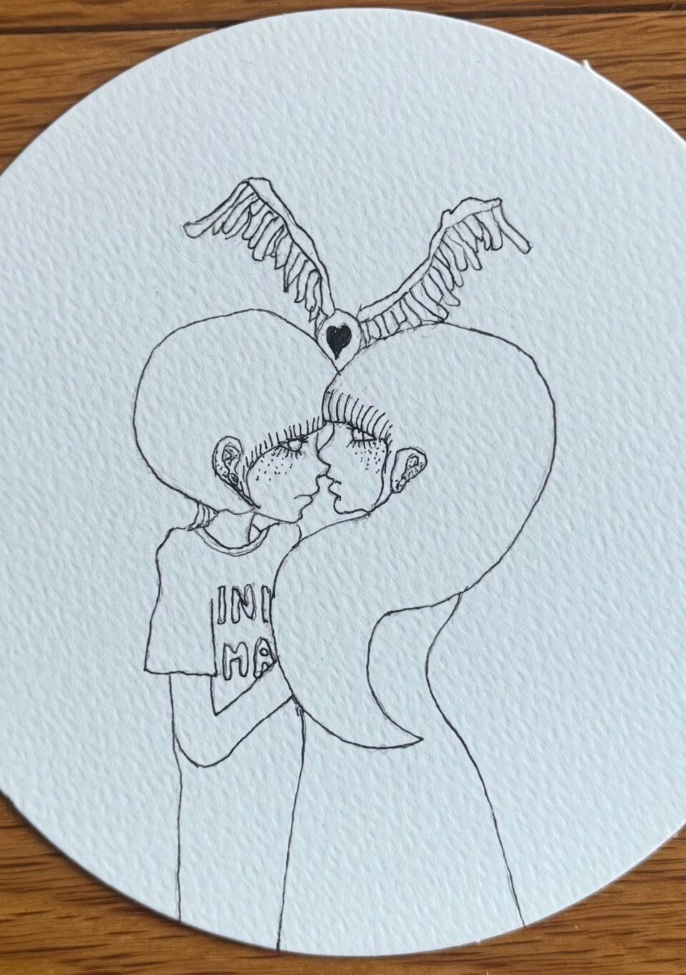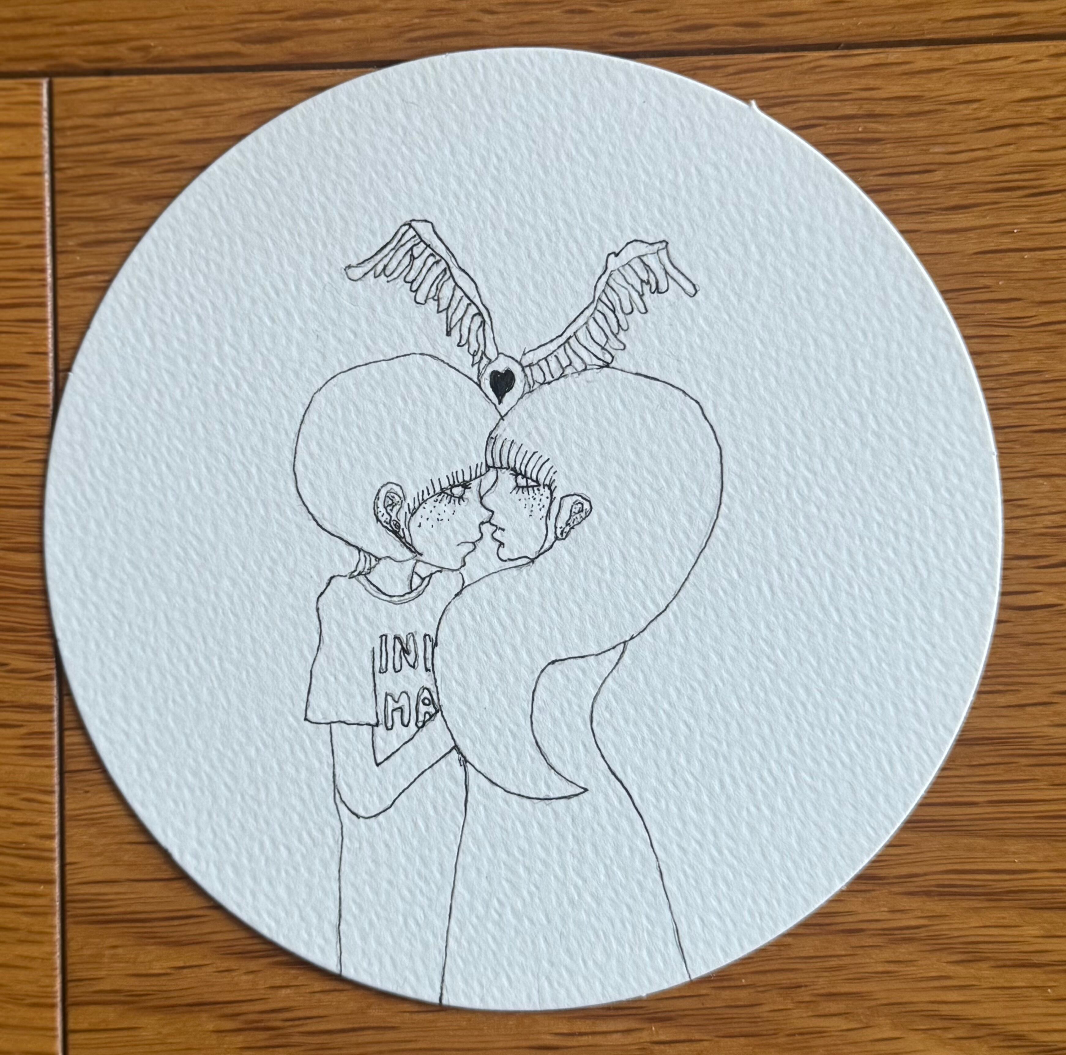 シンプルなボールペン画です。まあるい画用紙に。