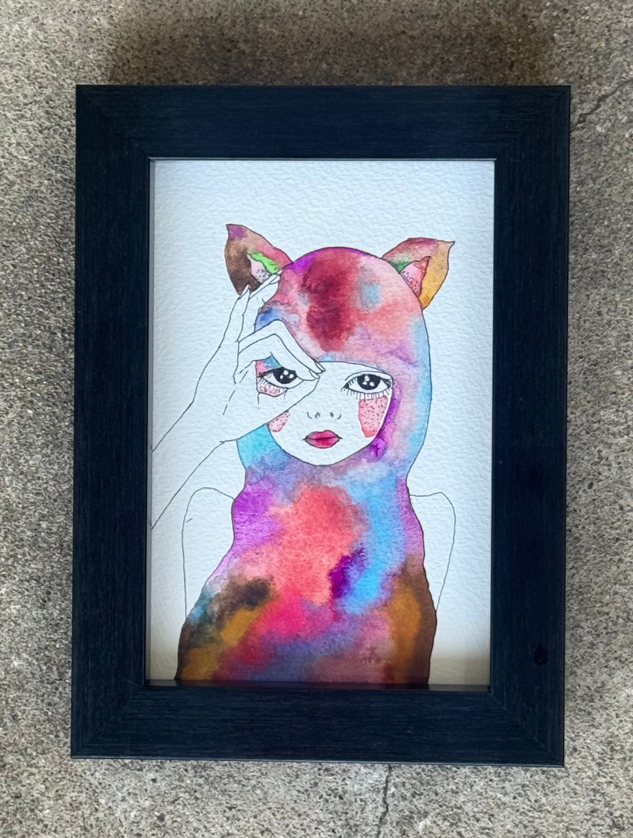 Ballpoint pen and watercolor painting on postcard paper