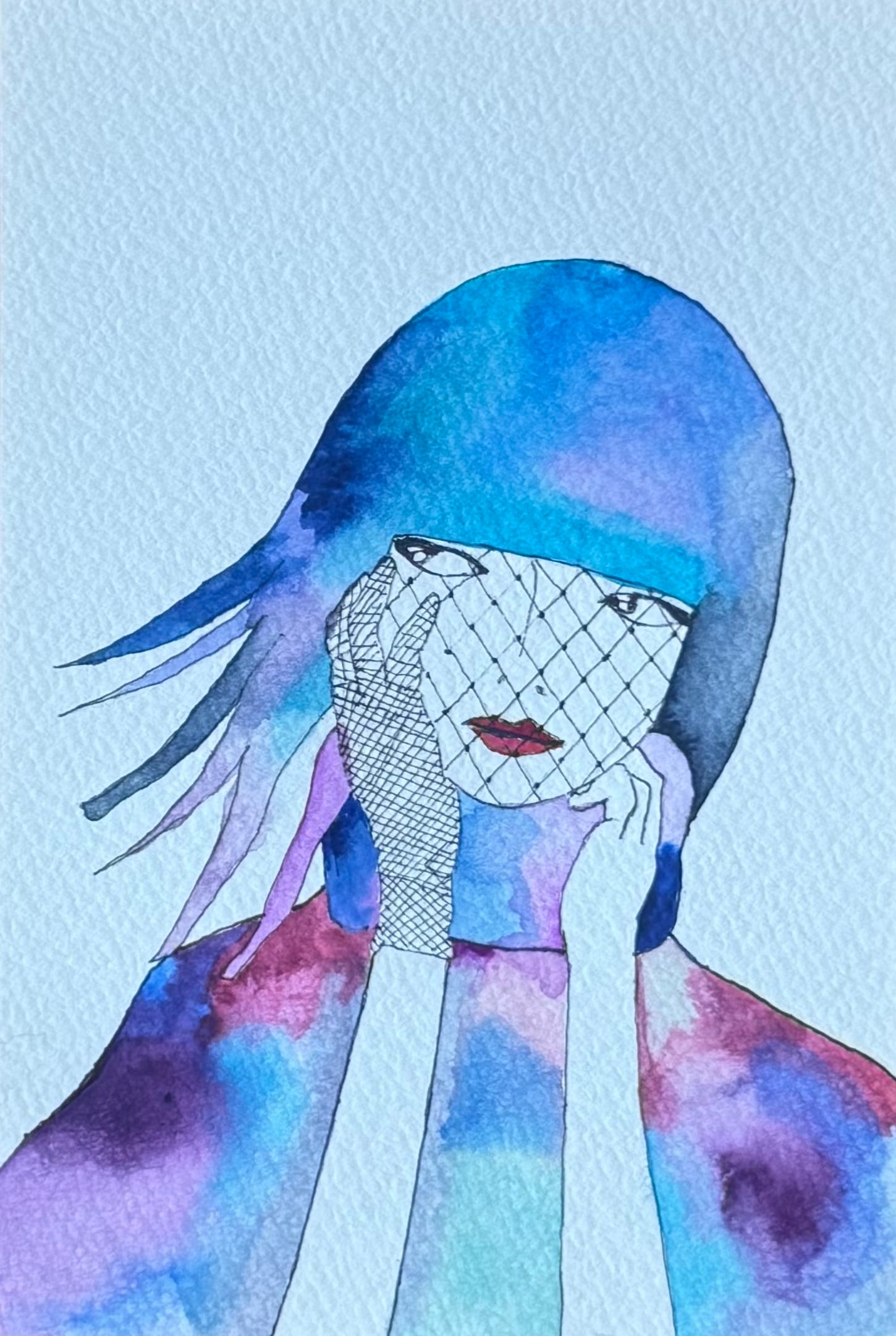 寒色中心ですが赤や紫などとの滲みも絶妙な一作です。