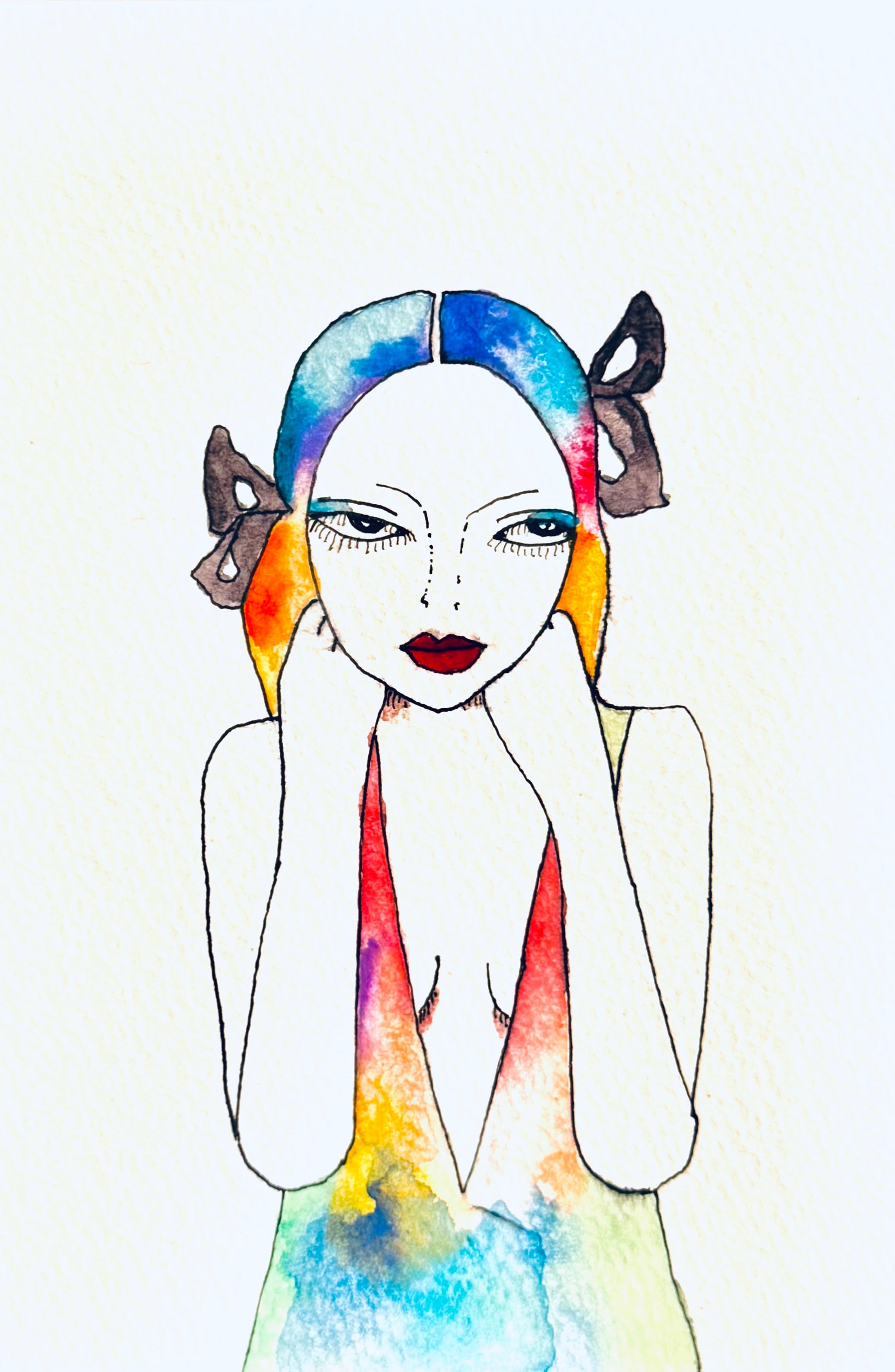Ballpoint pen and watercolor painting on postcard paper