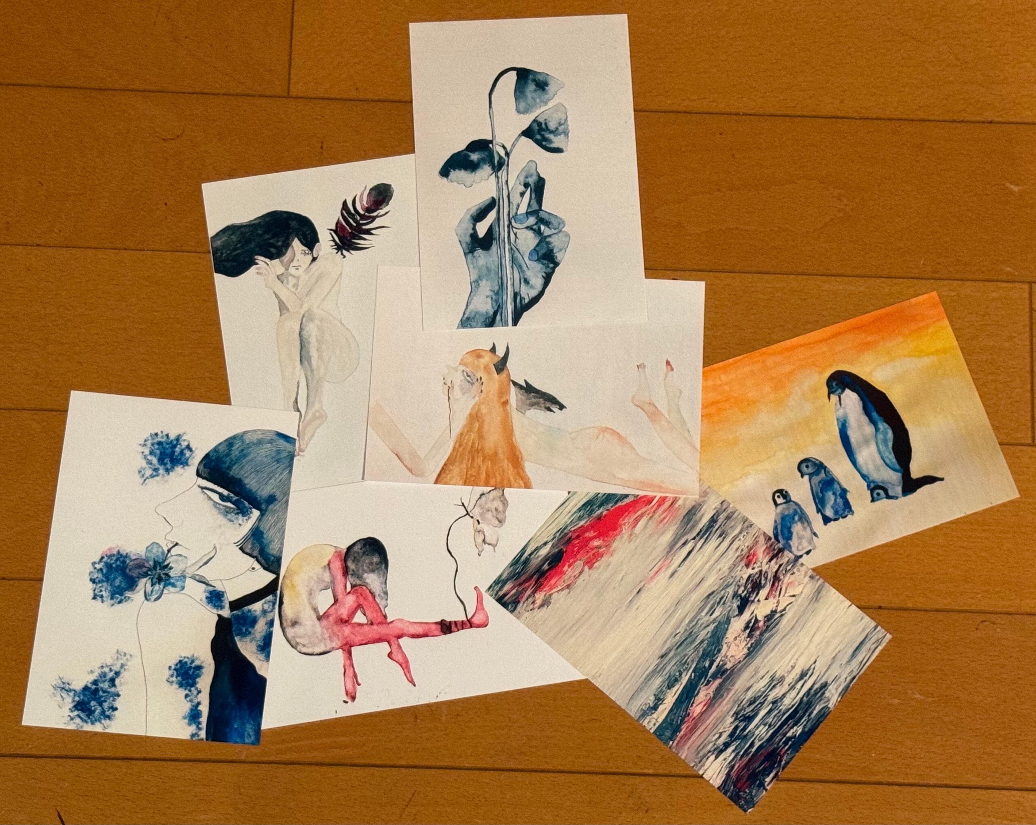 7種類の愛葉の鉛筆水彩画や、珍しいアクリル抽象画まで!個展でも展示された作品やインスタのみでの