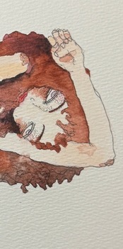 マーカーペンで繊細なタッチで描かれ、得意とする水彩のぼかしや滲みで美しい少女や女性、時にカップルが描かれています。
