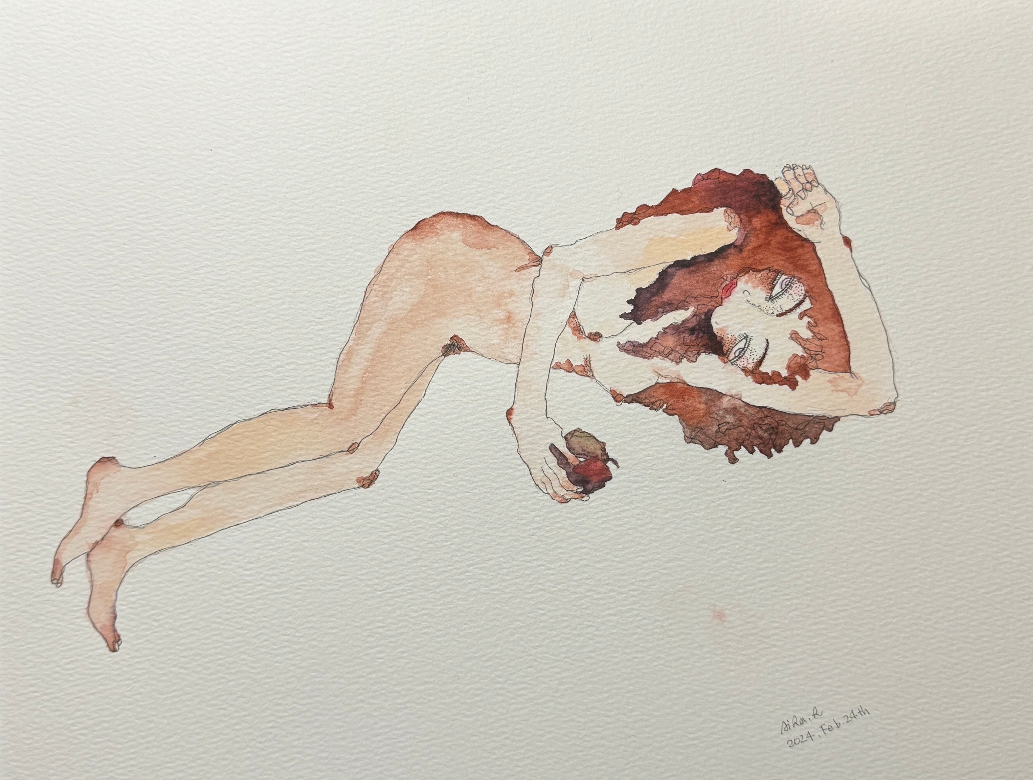 鉛筆、マーカーペン、水彩画